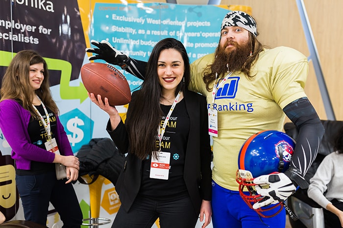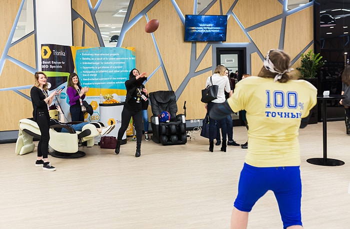 Наши партнеры помогли сделать нам день. Генеральным партнером SEMPRO 2018 стал сервис RushAnalytics, скидки и доступы к которому предлагались нашим участникам. SEO.ua организовали игровую зону, SE Ranking добавили фана, пригласив "игрока американского футбола", который никого не оставил равнодушным.
